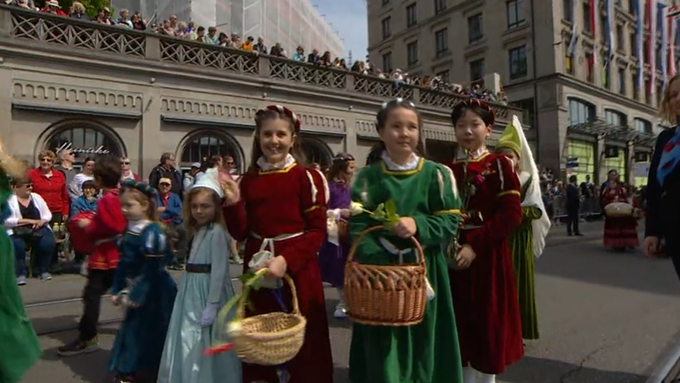 Die Umzugsreihenfolge entspricht der historischen Einordnung der Kostüme. Bekleidungen aus allen Epochen können bei der „Kommission Kinderumzug“ kostengünstig gemietet werden. Der Umzug wird durch die Gruppe „Weltoffenes Zürich“ mit Kindern aus der Region in Kostümen fremder Kulturen und Regionen abgeschlossen. Nach dem Kinderumzug erhalten die Kinder ein Zvieri-Säckli und ein Bhaltis.