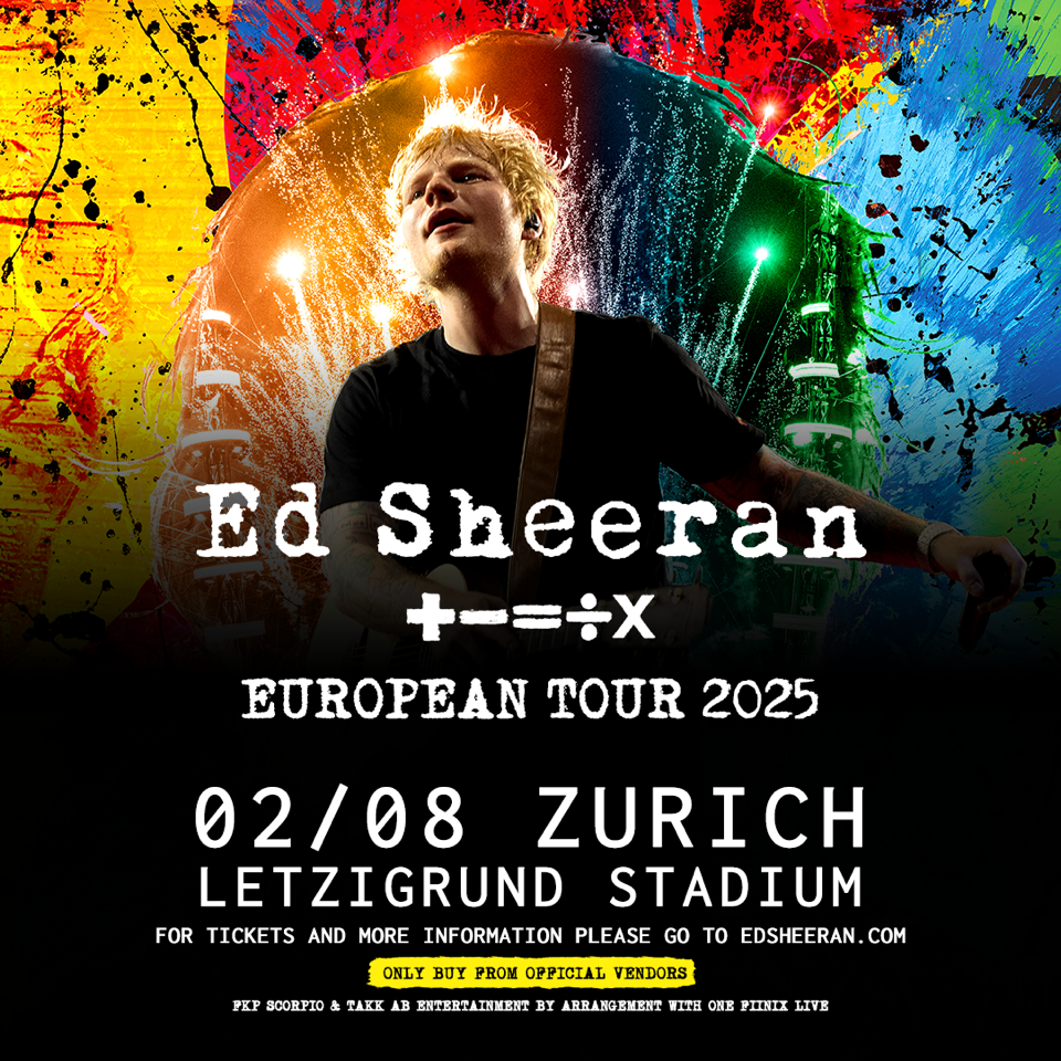 Tickets sind seit Mittwoch, 10. Juli, hier erhältlich. Spielen wird Ed Sheeran viele der beliebtesten Songs aus der zehnjährigen Ära der «Mathematics»-Alben, darunter auch aus seinem jüngsten Werk «-» (ausgesprochen: subtract).