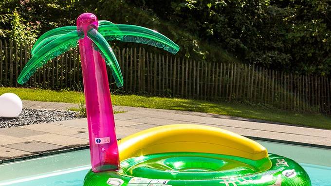 Dominik Widmer plantscht mit der Insel. Nina Roost böötelt mit dem Flamingo. Nick Laederach schwadert mit der Pizza. Maximilian Baumann chillt auf dem Einhorn.