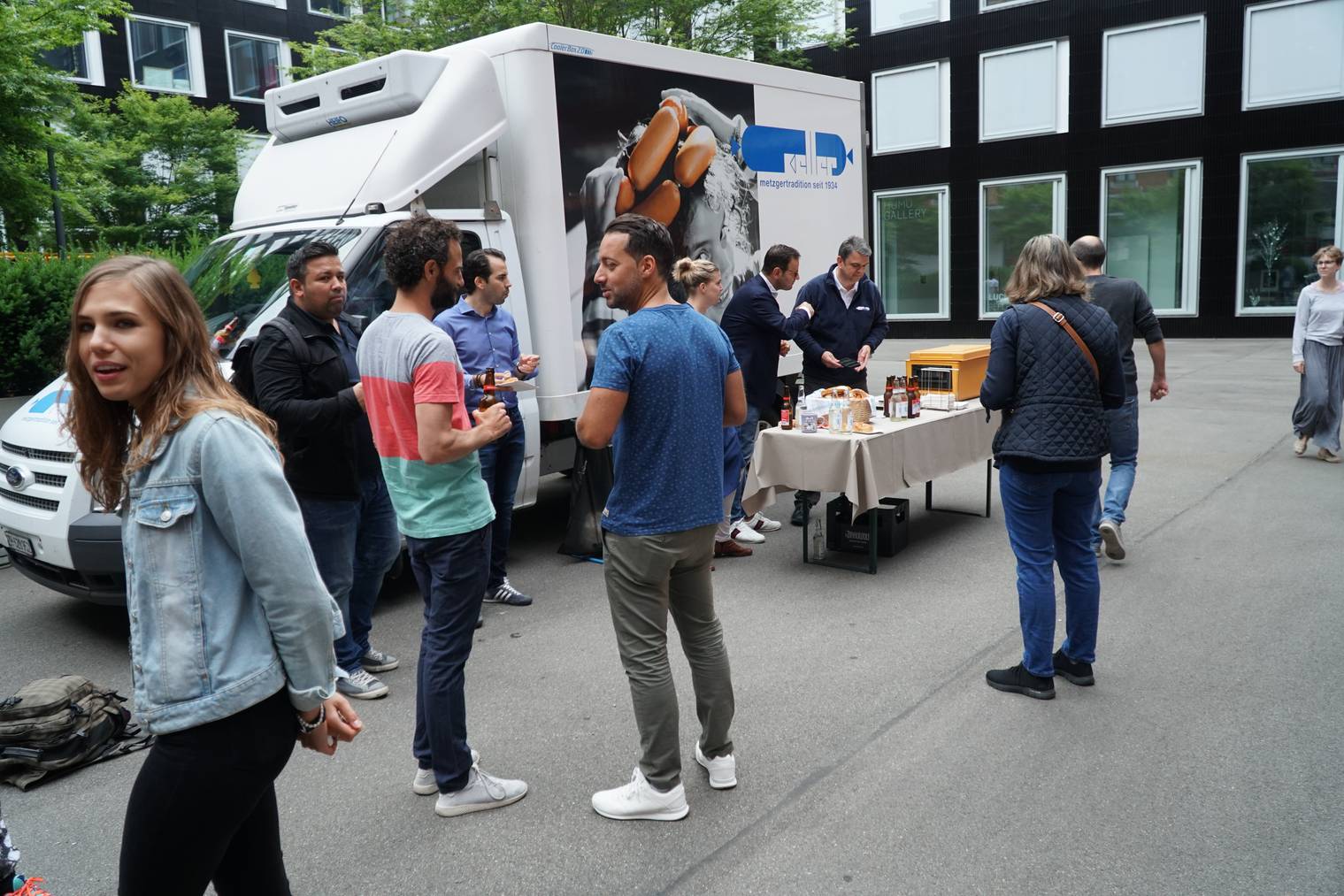 Céline Werdelis und Dominik Widmer sind zu ihrer grossen Wanderung zum Ursprung von Radio 24 aufgebrochen. Erste Etappe: Vom Radiostudio nach Richterswil. Doch eine gewöhnliche Wanderung sollte es nicht werden. Bereits am frühen Morgen wurden die beiden von der Metzgerei Keller AG mit einem stärkenden zMorge (Weisswürste und Brezel) versorgt. Schlag auf Schlag ging es weiter, denn die beiden wurden von einer Polizeieskorte der Stadtpolizei Zürich aus der Stadt geleitet. Erst wurden sie von Mediensprecher Marco Cortesi beim Radiostudio in Empfang genommen und dann von PolizistInnen bis zur Stadtgrenze zu Fuss oder auf dem Velo begleitet.