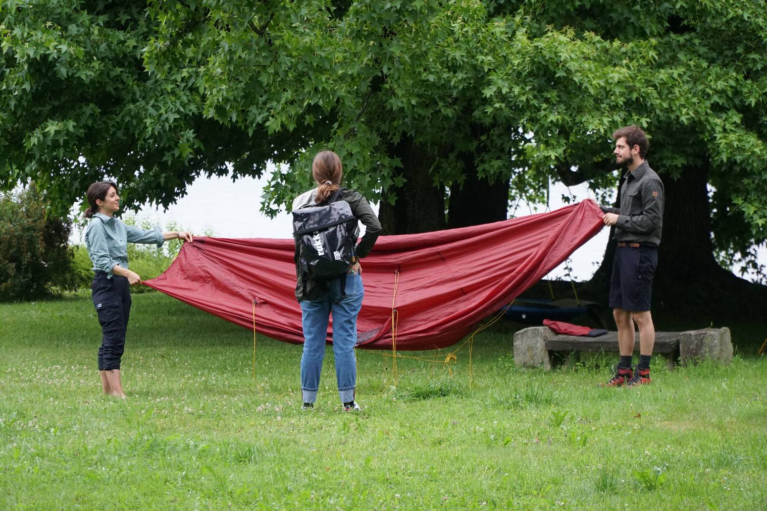 Angenehme Temperaturen, aber wolkenverhangener Himmel und regnerische Abschnitte. Der zweite Wandertag startete etwas trüb. Doch Céline und Dominik hatten trotz der stürmischen, eine erholsame Nacht hinter sich. Im grossen Garten mit Seezugang bei Daniele Gasparini und seiner Familie durften sie die Nacht verbringen.