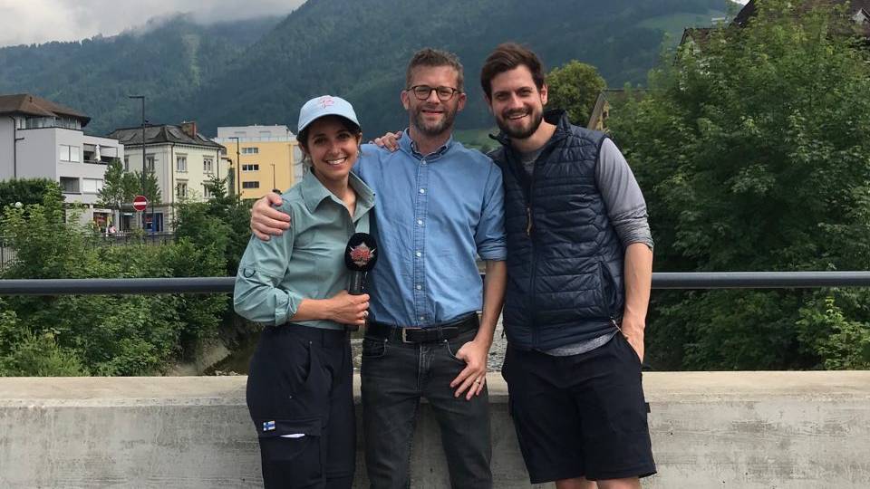 Ebenfalls mit von der Partie in Siebnen (SZ) war der langjährige Radio 24-Morgenmoderator David Karasek. Er hätte nicht gedacht, dass Céline und Dominik wirklich die ganzen Strecken wandern. 😉 Er wurde aber eines Besseren belehrt. 😜