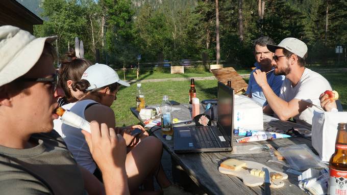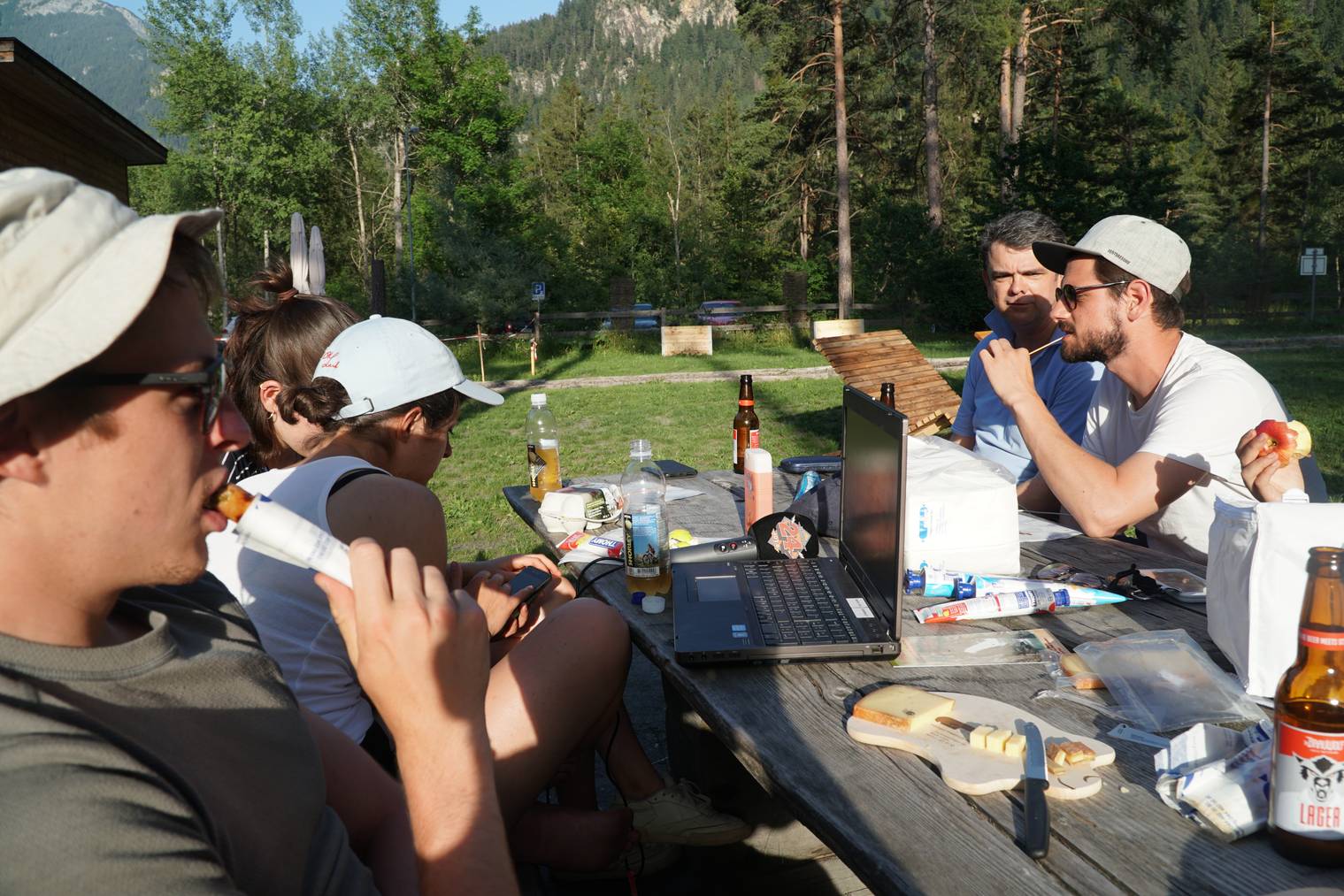 Von dort aus begaben sich die Wandervögel mit neuer Energie auf die letzten 4 km nach Thusis, wo sie den Campingplatz am frühen Abend erreichten. Zum Abendessen bekamen sie nochmals Besuch von Roger Willimann von der Metzgerei Keller AG, der sie mit frischen Gemüsespiessli, leckeren Würsten und kühlem Bier verwöhnte.
