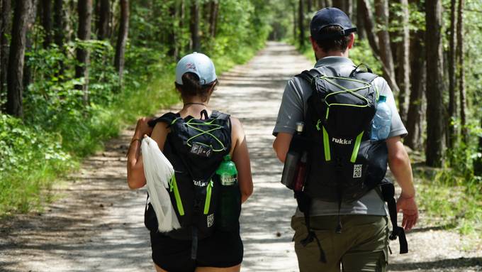 Draussen war es noch angenehm kühl, als Céline und Dominik heute Morgen auf dem Zeltplatz in der Nähe von Flims erwachten. Der Hitzewelle einen Schritt voraus, haben sich die beiden extra früh auf den Weg der 6. Etappe gemacht. Doch schon um 9 Uhr brannte die Sonne vom Himmel herunter, was das Zeug hielt - die beiden marschierten aber tapfer weiter.
