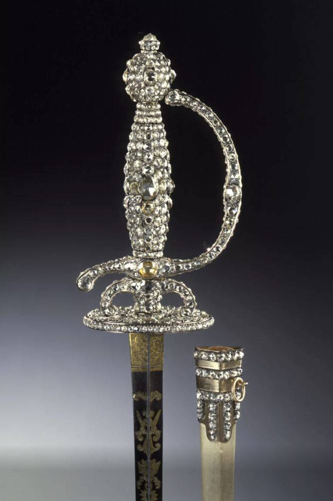Dabei handelt es sich um prominente Kunstwerke der Diamantrosen- und Brillantgarnitur sowie des Brillantschmucks der Königinnen wie Kleinod und Bruststern des polnischen Weissen Adler-Ordens, die Grosse Brustschleife, eine Kette aus sächsischen Perlen, eine Epaulette (Schulterstück) und ein mit über 770 Diamanten besetzter Degen.