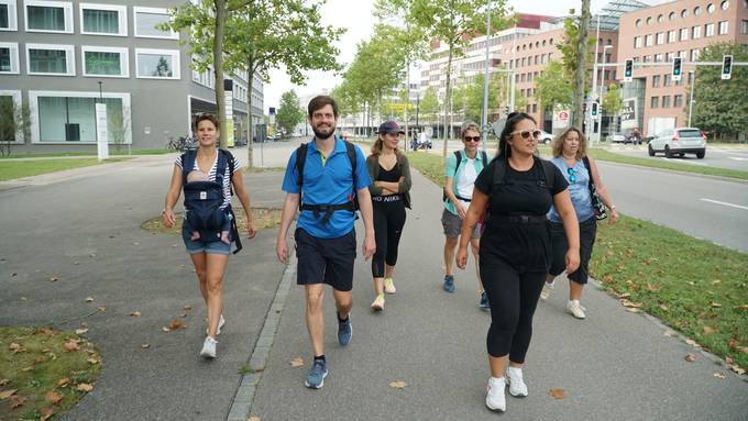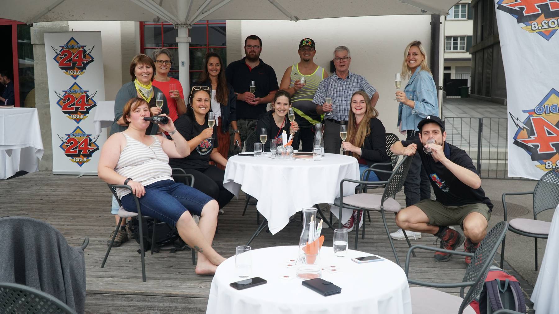 Der letzte «Ufsteller Unterwägs»-Wandertag hat in Rheinau mit Hörerin Alicia, Hörer Christian und Peter gestartet und führte die Wandergruppe an schmalen, idyllischen Wegen am schönen Rhein entlang. Unterwegs stiessen immer mehr MitwanderInnen dazu. Es ging zum Rheinfall, mit einer Vorapéro-Pause und einem Gläschen Rosé beim Schloss Laufen bis zur Rhybadi und dann schliesslich in die Schaffhauser Altstadt. Dort wurden Nina und Dominik bereits mit einem roten Zielband erwartet.