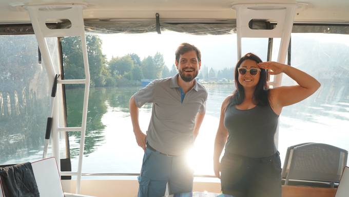 Unsere Wandervögel wachen in der Aeugstenhütte über Ennada auf. Für Nina war der Start in den Tag besonders aufregend: Als sie früh morgens auf die Toilette wollte, stehen nur wenige Meter von ihr entfernt, zwei röhrende Hirsche! Aber nicht nur die Hirsche motivieren Nina und Domnik heute, am Startpunkt warten schon sechs Mitwanderer auf die beiden. Unter ihnen auch Ninas Mutter, deren Vater aus Mollis ist. Als die Gruppe an einer Kuhweide vorbei kommt, spielt Sänger Looky ein Ständchen und auch die Kühe finden gefallen daran! Sie schauen fasziniert zu und muhen mit! Die Nacht verbringen Nina und Dominik auf einer Yacht auf dem schönen Zürichsee.