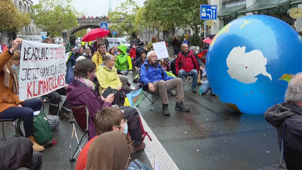 Schon gestern Montag haben Mitglieder der Gruppe «Extinction Rebellion» von 12 bis 17 Uhr die Uraniastrasse in der Zürcher Innenstadt blockiert.