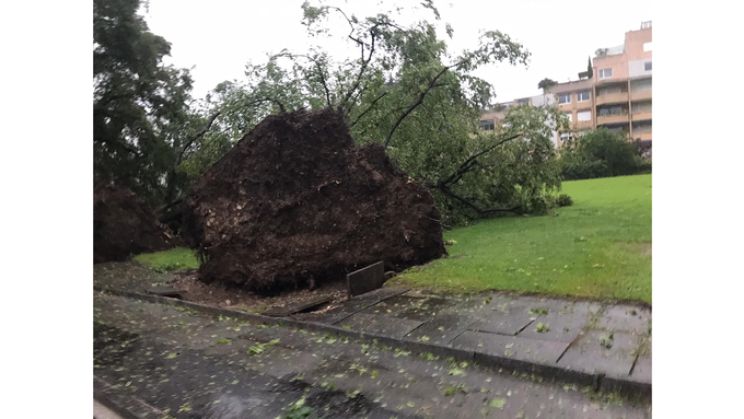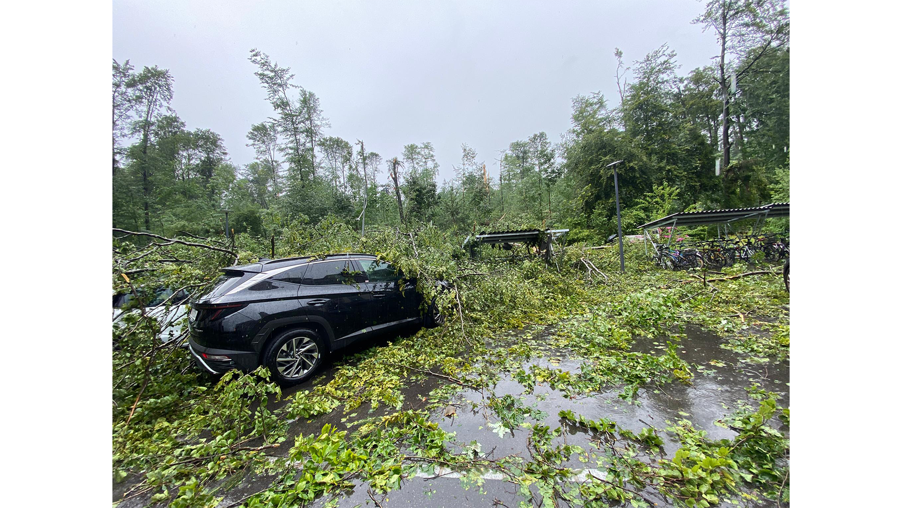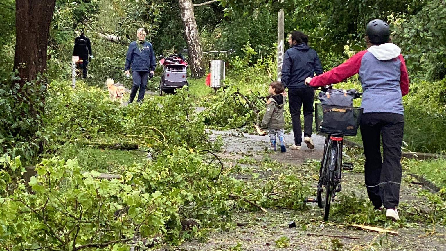 Dutzende Bäume wurden von den Böen in Richtung Siedlung umgeknickt. Sie fielen auf Autos und gegen Häuser. Anwohner berichten von tausenden Blitzen und tornadoähnlichen Zuständen.